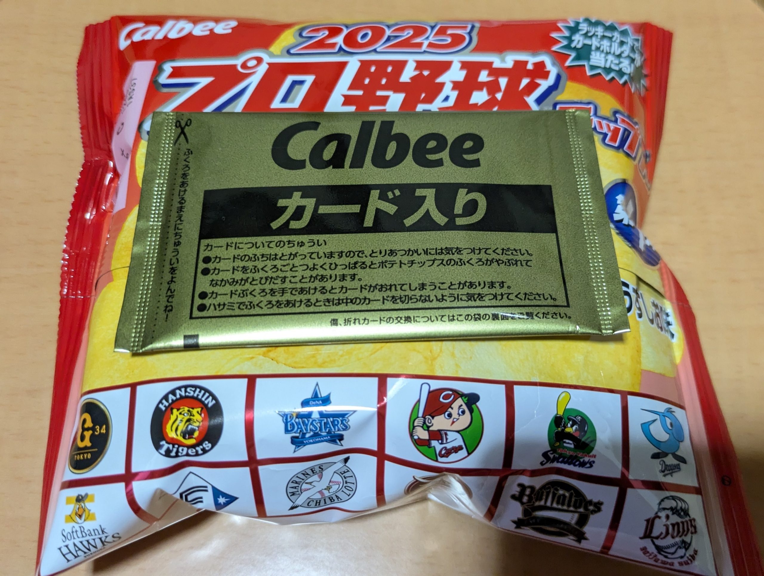 ポテトチップスはどうでもいいんです。カード目当てで買ったので。さっそくどの選手のカードが入っているのか袋を開けてみた。